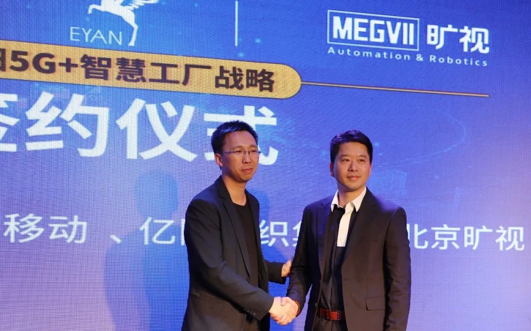 曠視聯(lián)合創(chuàng)始人兼CTO唐文斌與億陽紡織集團(tuán)董事長(zhǎng)劉諸輝簽署合作協(xié)議
