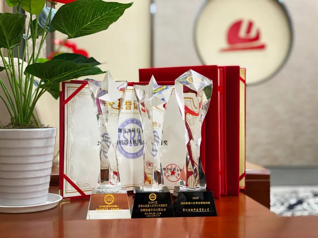 優(yōu)地科技已連續(xù)三屆,在年度評(píng)選活動(dòng)獲獎(jiǎng),2018年,優(yōu)地科技榮獲2018年度深圳機(jī)器人技術(shù)創(chuàng)新企業(yè)獎(jiǎng),2019年,優(yōu)地科技榮獲2019年度深圳市機(jī)器人優(yōu)秀應(yīng)用案例獎(jiǎng)。