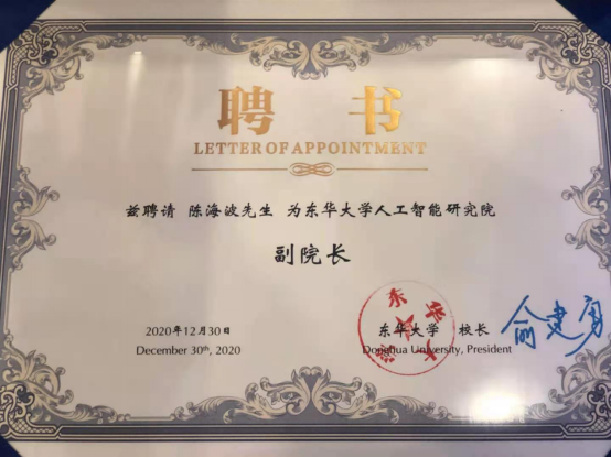 會上,劉承功、俞建勇、李陵申、鐘曉敏、過浩敏、吳玉華、東華大學教授張潔、陳海波共同為東華大學人工智能研究院揭牌。同時,深蘭科技創(chuàng)始人兼CEO陳海波受聘為東華大學人工智能研究院副院長。