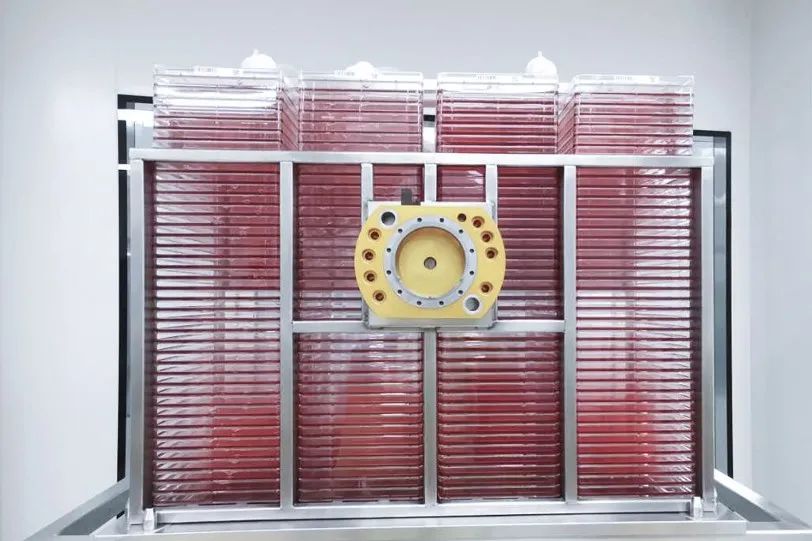 在成大生物的新自動化疫苗生產(chǎn)車間,可以了解到細(xì)胞培養(yǎng)的過程。不銹鋼框架裝有40層細(xì)胞工廠,每層細(xì)胞工廠里裝有一些培養(yǎng)基,在培養(yǎng)基中接種了貼壁細(xì)胞。細(xì)胞在不斷生長,而培養(yǎng)皿中的培養(yǎng)基必須隨之更換。再加入受病毒感染的細(xì)胞和病毒培養(yǎng)基。最后收獲這種高效疫苗的病毒。