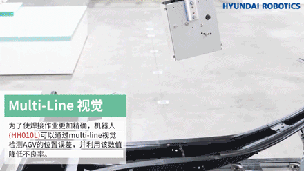接著,通過(guò)使用Multi-Line視覺(jué),HH010L機(jī)器人可以即時(shí)檢測(cè)AGV的位置誤差,從而使焊接作業(yè)更加精確,提高焊接質(zhì)量,降低產(chǎn)品不良率。