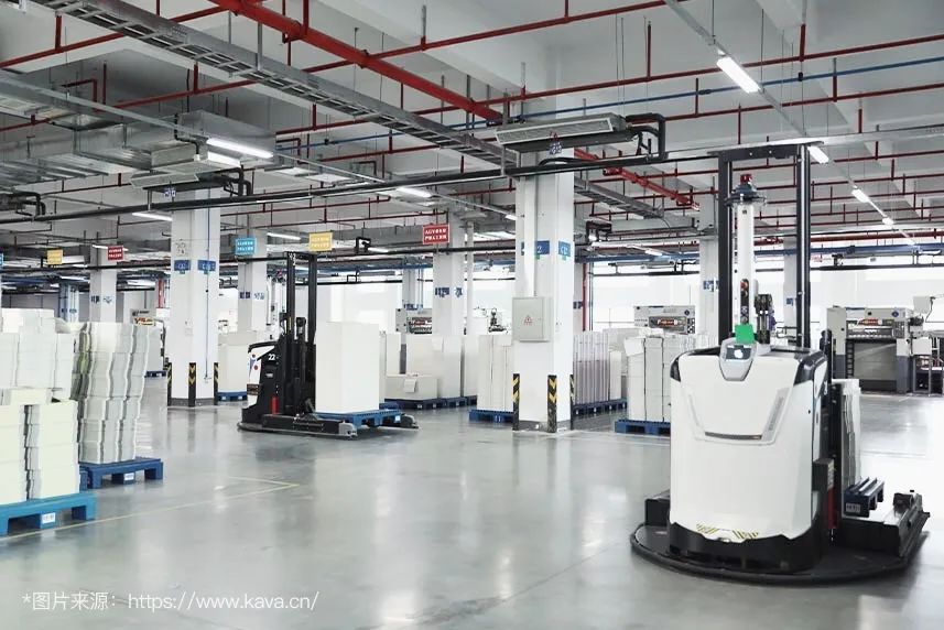 在KAVA的智能化工廠,埃力租賃提供的AGV智能機(jī)器人,擔(dān)負(fù)著各生產(chǎn)工序間的原物料、半成品及成品的輸送。自動化的設(shè)備及系統(tǒng),讓生產(chǎn)、倉儲與物流過程獲得全面的數(shù)字化管理。