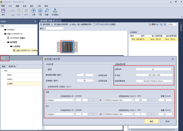 第三步:AS228T PLC建立 MODBUS TCP通信
