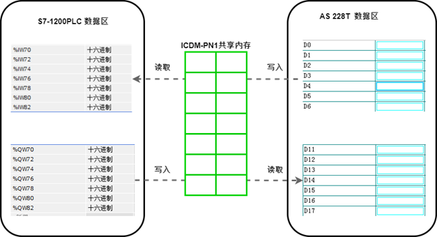 ?PLC數(shù)據(jù)映射區(qū)與ICDM-PN1模塊共享數(shù)據(jù)區(qū)對應(yīng)關(guān)系