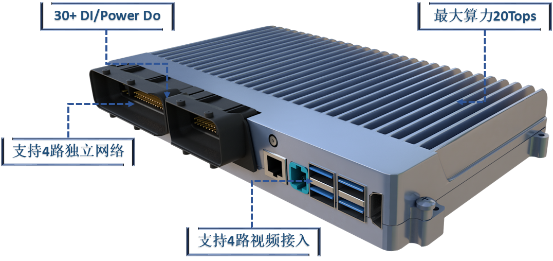 配備強(qiáng)大的算力性能,最大算力可達(dá)20Tops;支持4路圖像視頻接入;采用多網(wǎng)口技術(shù),支持4路獨(dú)立網(wǎng)絡(luò)(相互隔離不受干擾);采用雙路冗余CPU設(shè)計,支持多級安全防護(hù);豐富的IO外設(shè),支持30多路DI、Power Do,可兼容多種機(jī)器人形態(tài)。