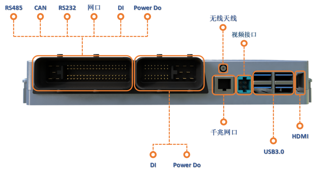 提供豐富的外置接口和通訊總線,包括USB3.0、千兆以太網(wǎng)、百兆以太網(wǎng)、CAN、RS485、RS232、HDMI、2.4G/5.8G WiFi、DI、Power Do、視頻接口等。具備無線通信、USB3.0通信、CAN/RS485總線通信、多網(wǎng)口模塊、HDMI顯示、視頻輸入、I/O輸入輸出、Power Do輸出等功能。支持激光、防撞條、3D視覺、光電等多種安全防護(hù)傳感器接入。能夠通過HDMI對外傳輸圖像信息及可視化交互內(nèi)容。滿足多種通信協(xié)議,支持通過CAN、ModBus、TCP/IP等協(xié)議與客戶端交互。