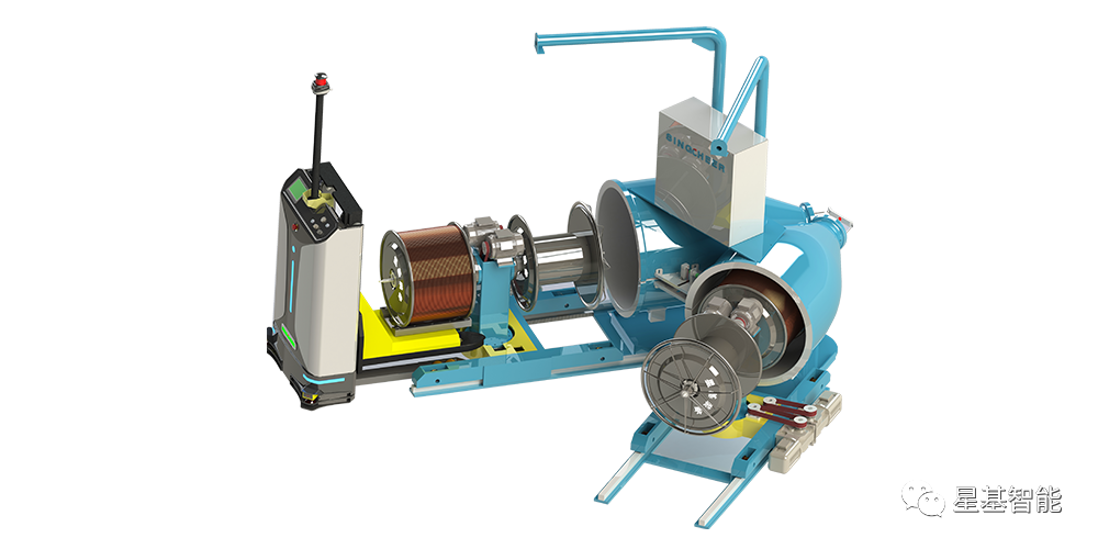 由調(diào)度系統(tǒng)進(jìn)行分配完成點(diǎn)對(duì)點(diǎn),點(diǎn)對(duì)多點(diǎn)等操作,并可進(jìn)入機(jī)器內(nèi)部(如自動(dòng)收線機(jī)、絞線機(jī)、放線機(jī)等)裝載線盤(pán),定位精度可達(dá)到+/- 5mm,停止角度精度≤0.5°,使操作工只需操作按鈕、穿線、接線等,徹底擺脫體力勞動(dòng)。