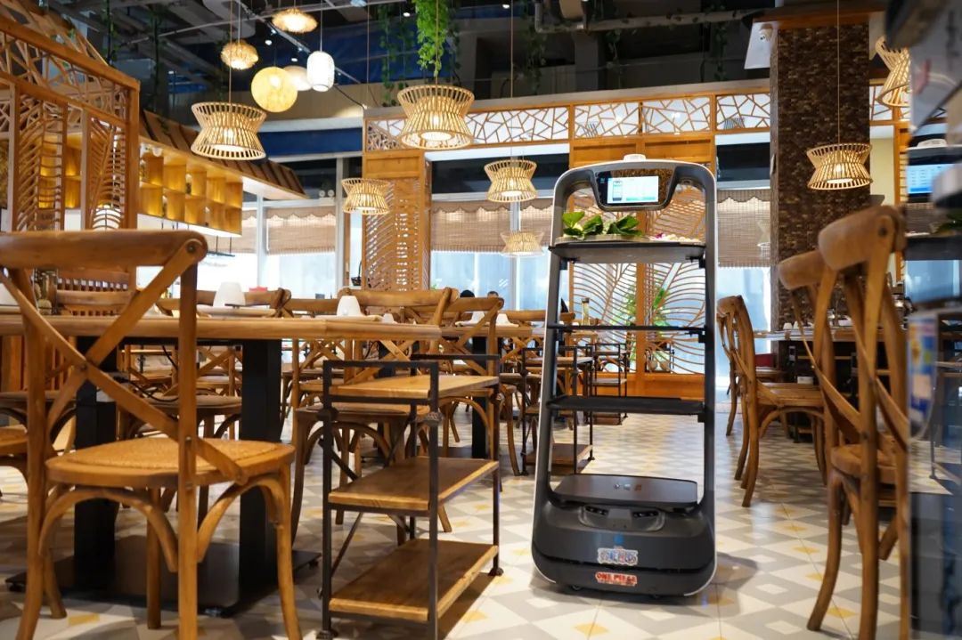 事實(shí)上,“歡樂送”是基于解決餐廳里高效率送餐的問題而研發(fā)制造的。為了實(shí)現(xiàn)精準(zhǔn)的送餐服務(wù),普渡科技自主研發(fā)了多傳感器融合的PUDU SLAM算法方案,在保證精度與可靠性的同時(shí)極大擴(kuò)展了適用場景,使機(jī)器人具備了高精度定位、3D避障、高度探測、自主規(guī)劃路徑的能力,率先實(shí)現(xiàn)了在人流復(fù)雜的餐廳場景下機(jī)器人的自動(dòng)駕駛能力;其次普渡科技獨(dú)立研發(fā)了多機(jī)器人分布式調(diào)度系統(tǒng),使每臺(tái)機(jī)器人都可以不依賴WIFI,與同一自組網(wǎng)里的任意機(jī)器人直接通信,更接近于人與人之間的交互機(jī)制,快速計(jì)算決策,對(duì)餐廳等動(dòng)態(tài)場景有更強(qiáng)的適應(yīng)性。同時(shí)還研發(fā)了車規(guī)級(jí)的獨(dú)立聯(lián)動(dòng)懸掛系統(tǒng),實(shí)現(xiàn)車規(guī)級(jí)避振,使機(jī)器人運(yùn)行更加平穩(wěn)。