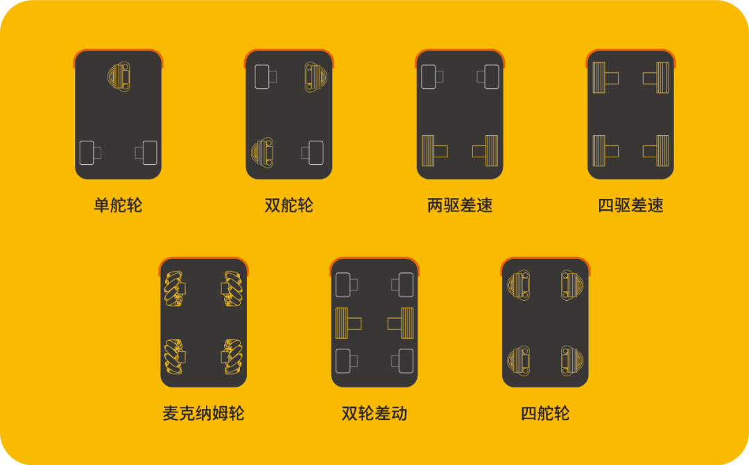 支持單舵輪、雙舵輪、差速輪、麥克納姆輪等多種底盤運動模型。