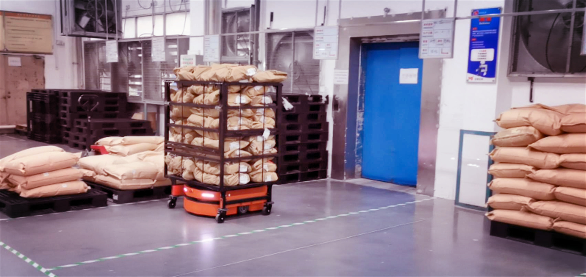在某知名品牌的體育用品代工廠的內(nèi)部物流環(huán)節(jié),就引入了多臺隆博科技的AMR進(jìn)行智能化升級。