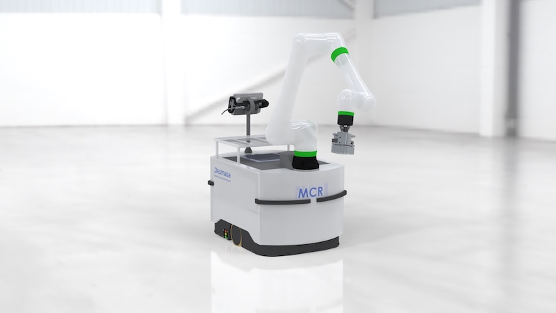 西班牙一家名為Desmasa的自動化技術(shù)公司推出了它所描述的“移動協(xié)作機器人”(MCR)。本質(zhì)上,該機器包括眾所周知的自主移動機器人(AMR),這是一個輪式機器人平臺,以及集成在頂部的協(xié)作機械臂。 雖然這種機器使用兩種熟悉的機器人,但它們一起形成了一種新型機器人,相關(guān)行業(yè)協(xié)會正在為其制定具體標(biāo)準(zhǔn)。