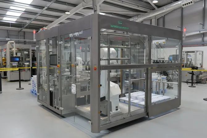 全球著名醫(yī)療保健和制藥行業(yè)生產(chǎn)商Ward Automation公司設(shè)計(jì)并制造了緊湊而靈活的機(jī)器人生產(chǎn)單元,用于每小時(shí)36,000支預(yù)充針生產(chǎn)線末端的檢查、貼標(biāo)和碼垛。三臺(tái)符合潔凈設(shè)計(jì)的史陶比爾機(jī)器人負(fù)責(zé)高效搬運(yùn)管巢盒,用于預(yù)充針自動(dòng)化檢查和包裝。