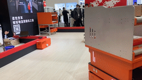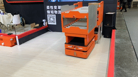本次展會(huì)上所展示的輥筒接駁機(jī)器人R300S,能夠精準(zhǔn)對(duì)接生產(chǎn)設(shè)備,通過(guò)輥筒機(jī)構(gòu)完成物料的移載。同時(shí)雙工位的設(shè)計(jì),使得該AMR可以同步進(jìn)行備料的上線(xiàn)及空料箱的回收,或者一次性進(jìn)行兩箱物料的上料或下料。