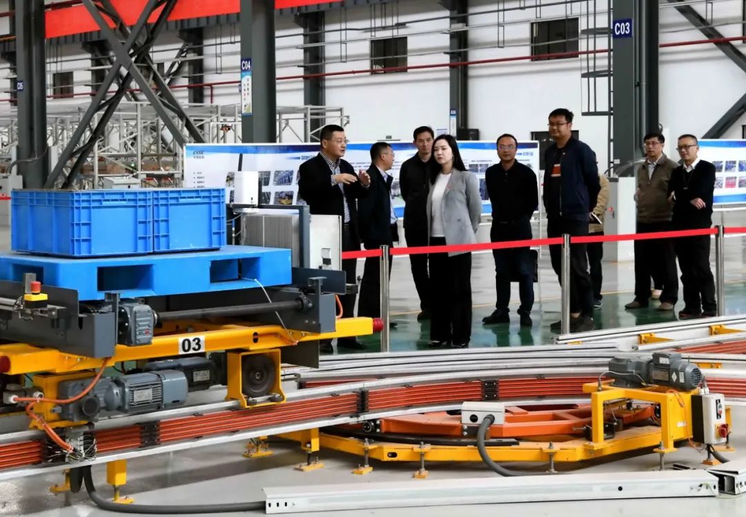 咸蓮一行參觀了物流裝備、機場行李分揀、AGV小車、智慧停車系統(tǒng)等智能裝備和智能產(chǎn)線,了解了昆船產(chǎn)品架構(gòu)、產(chǎn)業(yè)發(fā)展和科技創(chuàng)新產(chǎn)品情況。