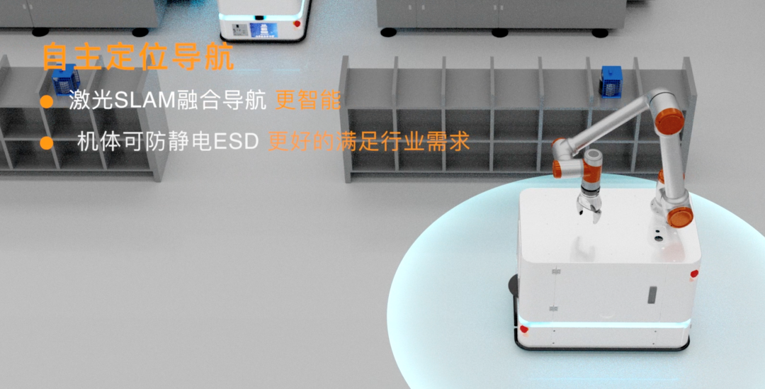 智能高效全柔性自然導(dǎo)航AMR底盤+協(xié)作機(jī)械臂的智能集成,采用激光SLAM融合導(dǎo)航技術(shù),無(wú)需進(jìn)行環(huán)境改造,支持多機(jī)協(xié)作、人機(jī)協(xié)作,并可隨時(shí)滿足用戶變更產(chǎn)線、擴(kuò)充產(chǎn)能的需求;