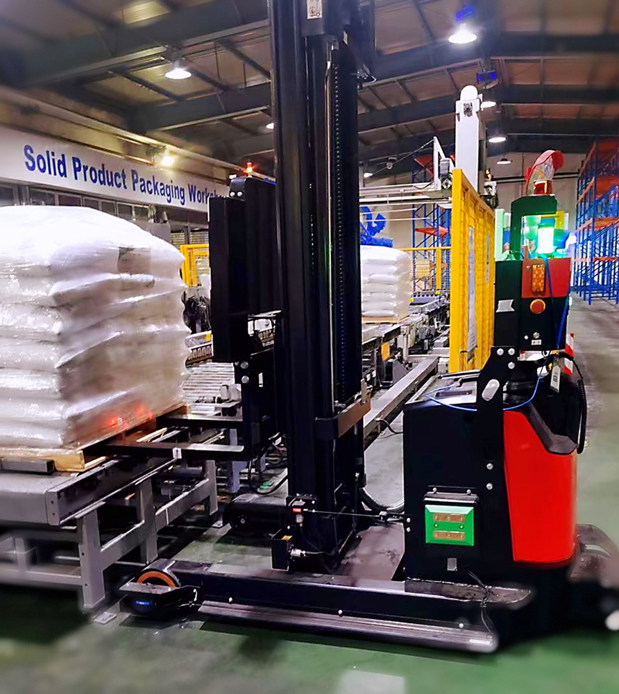 杭叉智能通過整合機(jī)械臂、輸送線、穿梭車、打包機(jī)以及WMS等軟硬件,結(jié)合自身新款堆垛前移車進(jìn)行項(xiàng)目規(guī)劃,充分發(fā)揮車輛小巧靈活,對于空間需求進(jìn)一步縮小的優(yōu)勢,配以鋰電快充大容量的特點(diǎn)以及5G通訊技術(shù)的巨大優(yōu)勢,因地制宜,在較短的時(shí)間內(nèi)完成實(shí)施并將項(xiàng)目投入使用,完全替代了原先人工車的作業(yè)模式,達(dá)到了機(jī)器換人的目的,實(shí)現(xiàn)整體物流智能化。