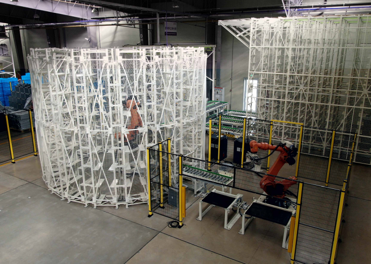 機(jī)器人部件多,部分部件交期長,為合理安排庫存,新時達(dá)機(jī)器人工廠采用立體倉庫存放規(guī)格較小的物料、平庫存放較為笨重的物料、環(huán)形分揀倉實(shí)現(xiàn)機(jī)器人自動分揀、AGV實(shí)施場內(nèi)物料搬運(yùn)的智能倉儲物流技術(shù)。“就像穿了西裝還要配上皮鞋和領(lǐng)帶一樣,這些與機(jī)器人制造機(jī)器人效率提升相對應(yīng)的周邊智能化平臺的支撐,合理利用了空間確保了產(chǎn)能,確保產(chǎn)品及時交付?!睆堟?zhèn)奎說。