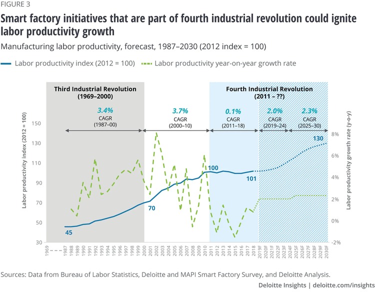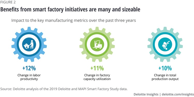 全自動(dòng)智能工廠的好處是驚人的。德勤(Deloitte)報(bào)告說(shuō),一家領(lǐng)先的電子公司設(shè)計(jì)了一個(gè)具有全自動(dòng)生產(chǎn)系統(tǒng)的智能工廠,從而縮短了交貨時(shí)間,降低了成本,提高了生產(chǎn)能力并減少了50%的次品。從2011年第四次工業(yè)革命正式開(kāi)始到2030年,勞動(dòng)生產(chǎn)率估計(jì)將增長(zhǎng)30%。根據(jù)Mordor Intelligence的數(shù)據(jù),智能工廠的市場(chǎng)價(jià)值估計(jì)高達(dá)2708億美元。盡管我們不確定Mordor Intelligence的團(tuán)隊(duì)是如何得出這個(gè)數(shù)字的,但我們相信他們中有幾位具有“ Smart”職位的人。