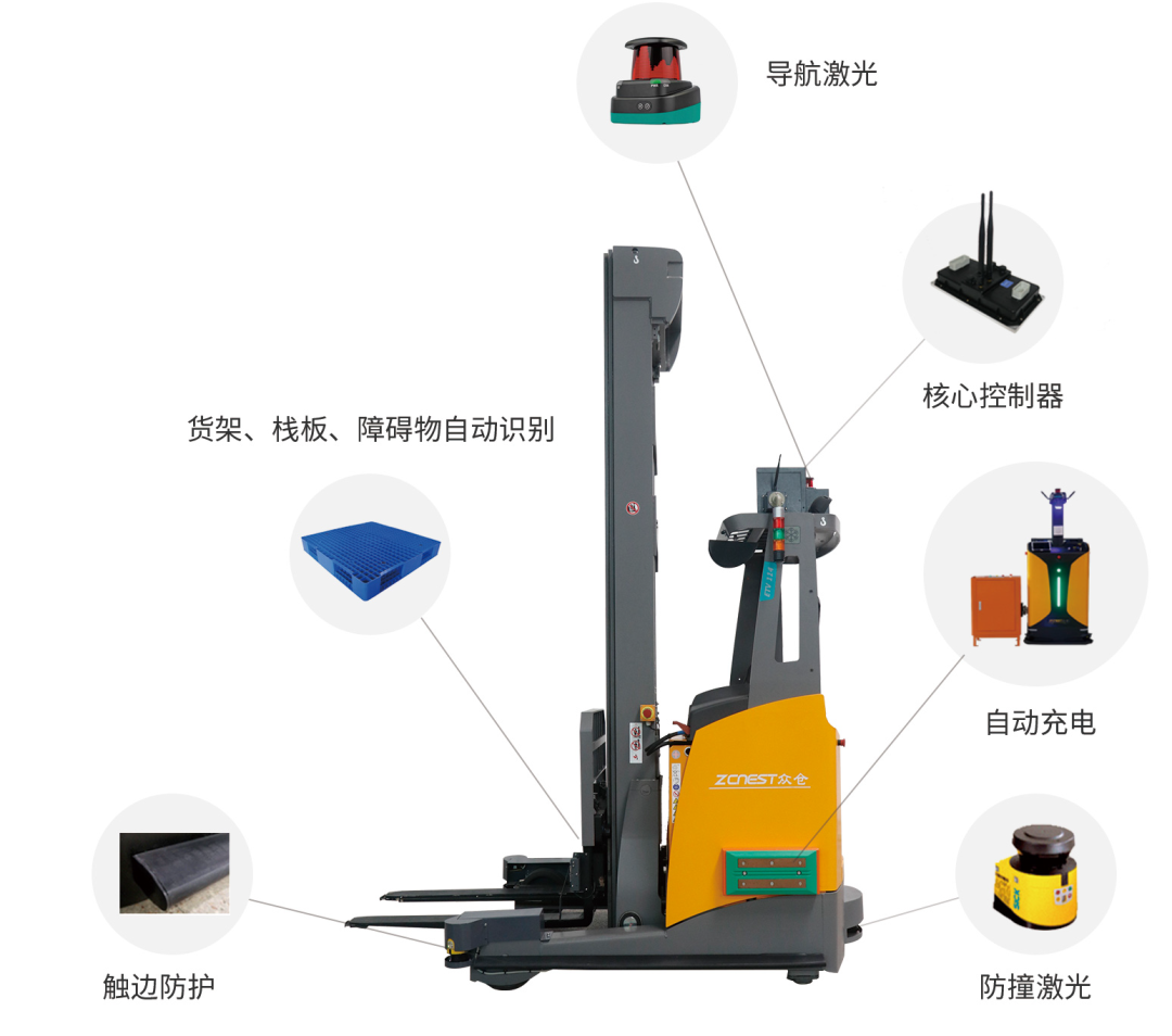 采用激光SLAM導(dǎo)航技術(shù)的無人叉車AGV,信息豐富、導(dǎo)航穩(wěn)定,可根據(jù)工作場景及時(shí)停車和繞障。