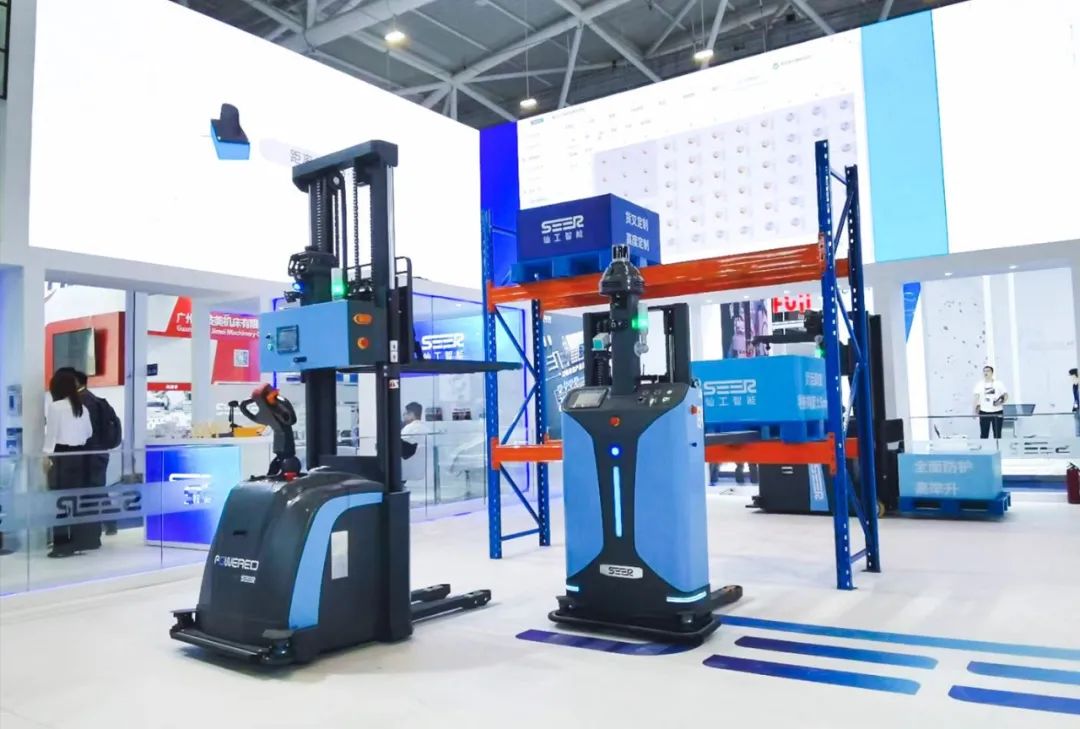 除了上述產(chǎn)品外,仙工智能(SEER)特意為本次展會定制了一款伸縮臂機器人,不僅可以實現(xiàn)精準對接,還可實現(xiàn)物料的高效搬運。