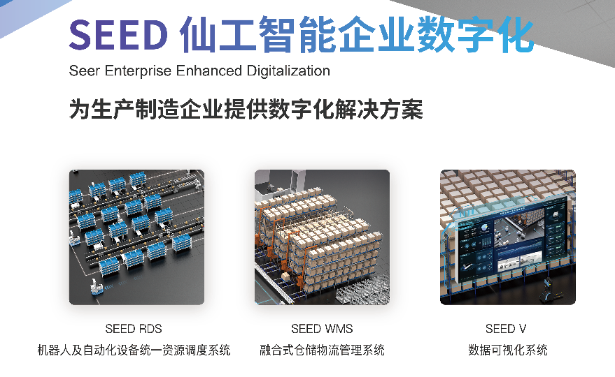 仙工智能企業(yè)數(shù)字化 SEED 經(jīng)過不斷升級(jí)更迭,現(xiàn)由機(jī)器人及自動(dòng)化設(shè)備統(tǒng)一資源調(diào)度系統(tǒng)(SEED RDS)、融合式倉儲(chǔ)物流管理系統(tǒng)(SEED WMS)、數(shù)據(jù)可視化系統(tǒng)(SEED V)三大系統(tǒng)構(gòu)成,有各自專長(zhǎng)領(lǐng)域又可協(xié)作互補(bǔ),助力企業(yè)數(shù)字化轉(zhuǎn)型。