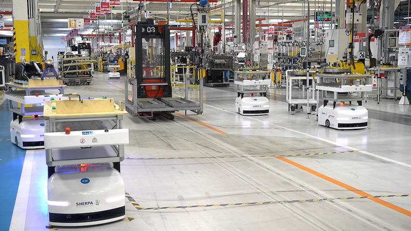 為了實現(xiàn)目標,Sherpa移動機器人提議在由其車隊管理系統(tǒng)軟件管理的六個機器人車隊的支持下,對裝配線進行完全重組。與AGV不同,這些AMR不依賴專用路徑。它們可以編程,以適應環(huán)境的約束和不斷的進化。