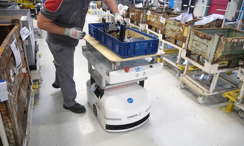 Sherpa 移動機器人公司技術總監(jiān)Damien Winling說:“機器人在正確的時間帶著正確的零件到達,這些機器人每天使用20小時,每天總共執(zhí)行450個機器人任務。使用這種車隊可以減輕裝配任務的艱巨性,并降低與運輸貨物相關的風險。流程的管理更加順暢,生產(chǎn)率就提高了?!?/p>