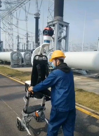 整個(gè)仿真部署系統(tǒng),采用更加專業(yè)的便攜式制圖設(shè)備“背包俠”,“背包俠”主要負(fù)責(zé)進(jìn)行高精度變電站點(diǎn)云與全景數(shù)據(jù)的采集。