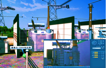 在全局場(chǎng)景快速進(jìn)入某個(gè)變電站,集成遙視系統(tǒng),查看站內(nèi)視頻監(jiān)控分布情況,可調(diào)取任意位置視頻畫(huà)面和監(jiān)控畫(huà)面。