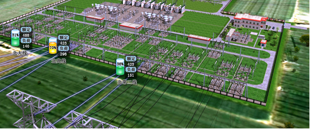 基于物聯(lián)網(wǎng)示范變電站,通過(guò)背包俠快速生產(chǎn)三維實(shí)景建模,通過(guò)已有智能運(yùn)檢管控平臺(tái)進(jìn)行數(shù)據(jù)對(duì)接,實(shí)現(xiàn)運(yùn)行數(shù)據(jù)和輔助設(shè)備數(shù)據(jù)可視化,并實(shí)現(xiàn)運(yùn)維實(shí)景推演。通過(guò)設(shè)備設(shè)施參數(shù)導(dǎo)入(基本技術(shù)參數(shù),技術(shù)規(guī)范書(shū),CAD或者PDF圖紙等)和末端感知元件(溫濕度、水侵傳感器、電流傳感器等),各項(xiàng)參數(shù)在三維模型中展示,建立變電站運(yùn)行實(shí)景模型。對(duì)接智能運(yùn)檢管控平臺(tái),實(shí)現(xiàn)運(yùn)行狀態(tài)監(jiān)測(cè)(電流、電壓、有功等)、故障報(bào)警等功能。設(shè)立運(yùn)行場(chǎng)景,通過(guò)三維可視化平臺(tái)實(shí)現(xiàn)帶電狀態(tài)標(biāo)識(shí)、運(yùn)行狀態(tài)模擬、安全防護(hù)提示、應(yīng)急預(yù)案模擬、員工仿真培訓(xùn)等功能。