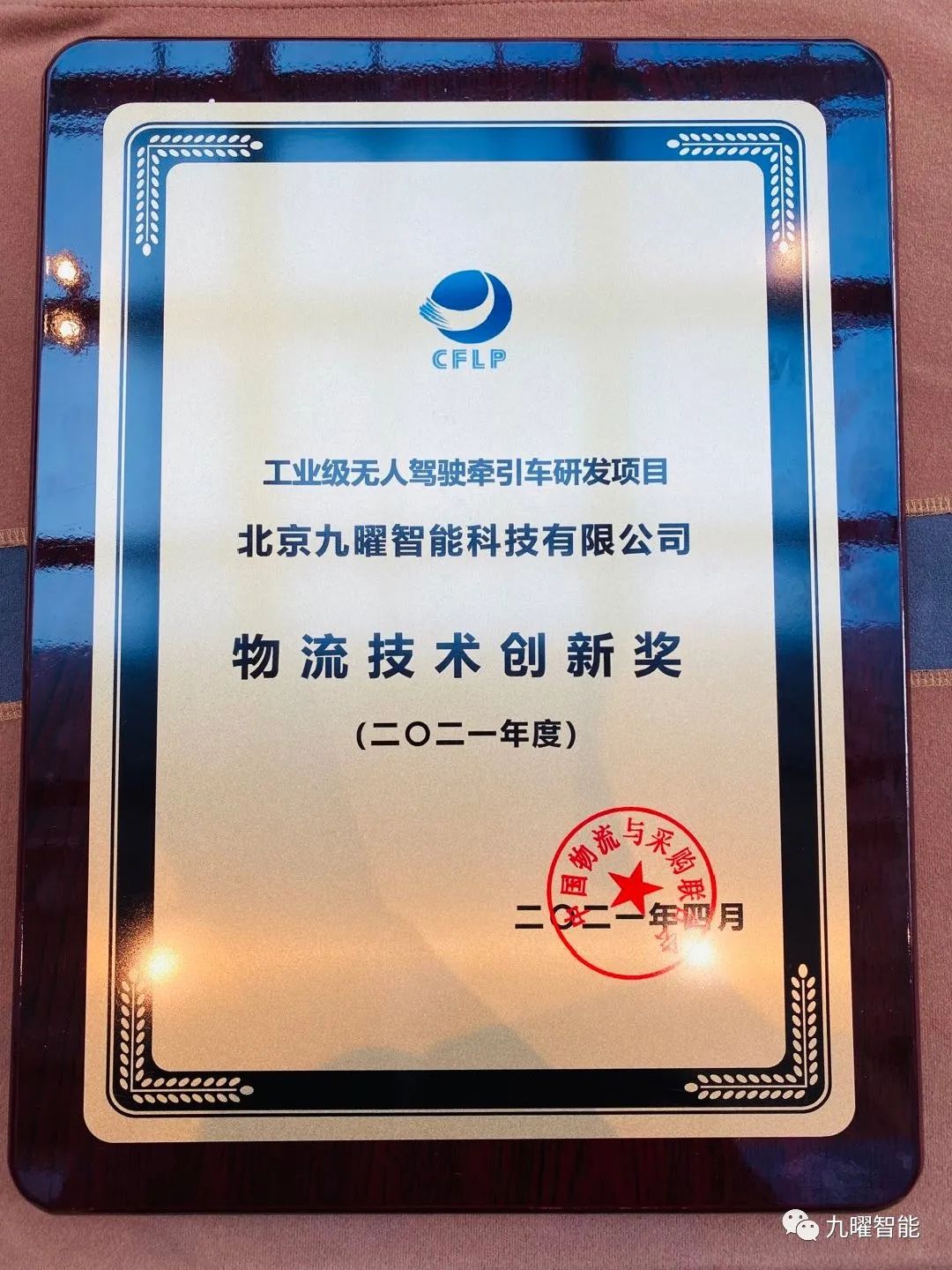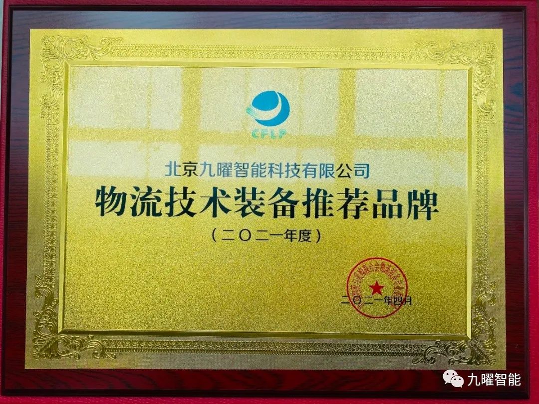 九曜智能榮獲2021年度物流技術裝備推薦品牌