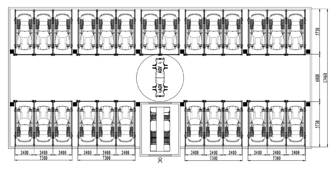 一套梳齒二層智能停車系統(tǒng),可配置多臺夾持式機器人,在存取車過程中協同作業(yè),縮短用戶等待時間,大大提高了存取車效率。