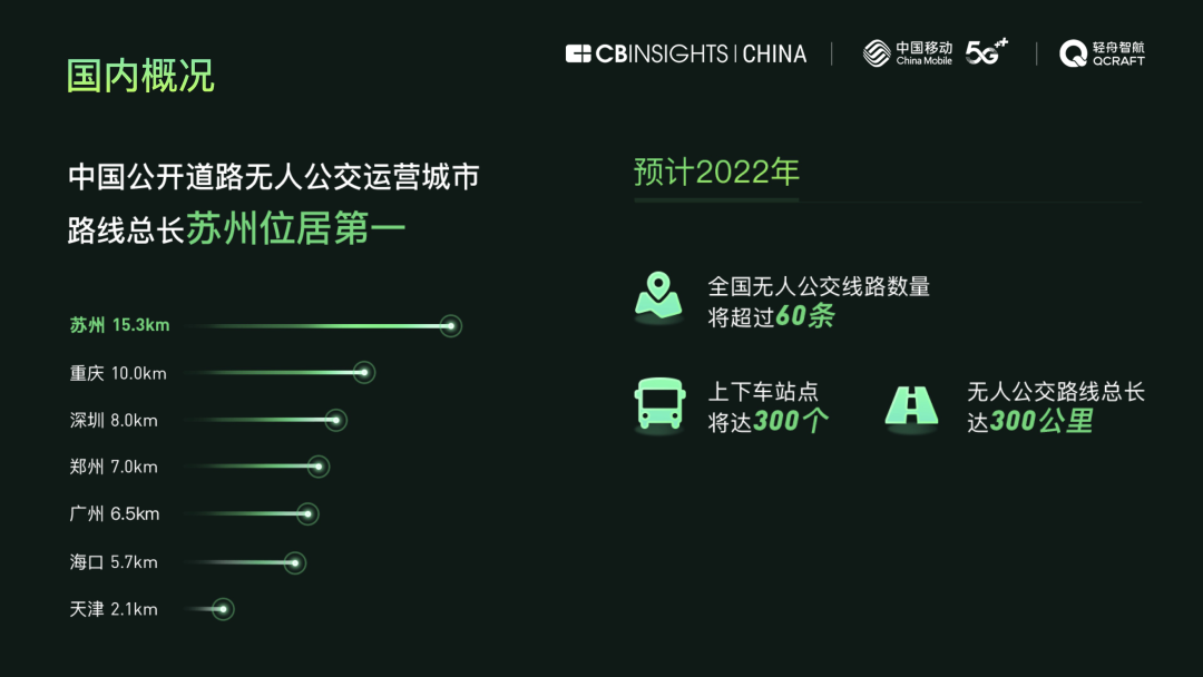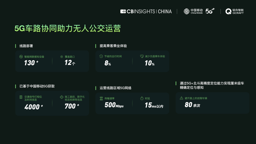 《中國(guó)首條5G無(wú)人公交線路運(yùn)營(yíng)報(bào)告》由CB Insights中國(guó)團(tuán)隊(duì)、中國(guó)移動(dòng)、輕舟智航聯(lián)合推出。CB Insights是全球知名的市場(chǎng)數(shù)據(jù)研究平臺(tái)和權(quán)威智庫(kù),中國(guó)移動(dòng)是中國(guó)規(guī)模最大的移動(dòng)通信運(yùn)營(yíng)商,輕舟智航則是無(wú)人駕駛領(lǐng)域的頭部企業(yè),在多地部署有無(wú)人公交線路。