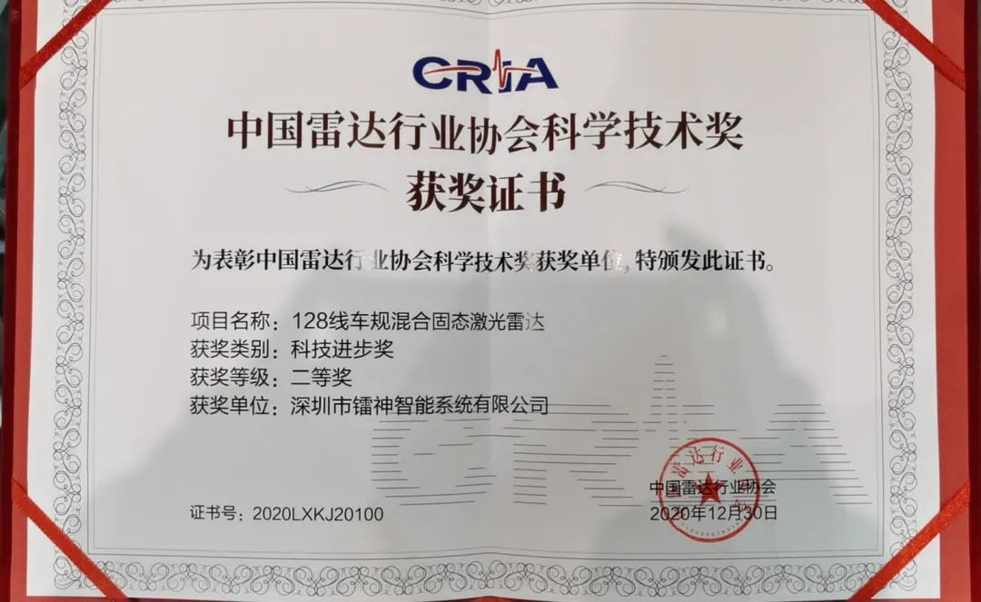 此外,鐳神智能憑借領(lǐng)先的技術(shù)研發(fā)和精湛的產(chǎn)品工藝,其128線混合固態(tài)激光雷達(dá)也榮獲了首屆中國雷達(dá)行業(yè)協(xié)會(huì)科學(xué)技術(shù)獎(jiǎng)二等獎(jiǎng),頒獎(jiǎng)典禮于4月23日上午在2021第九屆世界雷達(dá)博覽會(huì)上同期舉辦。