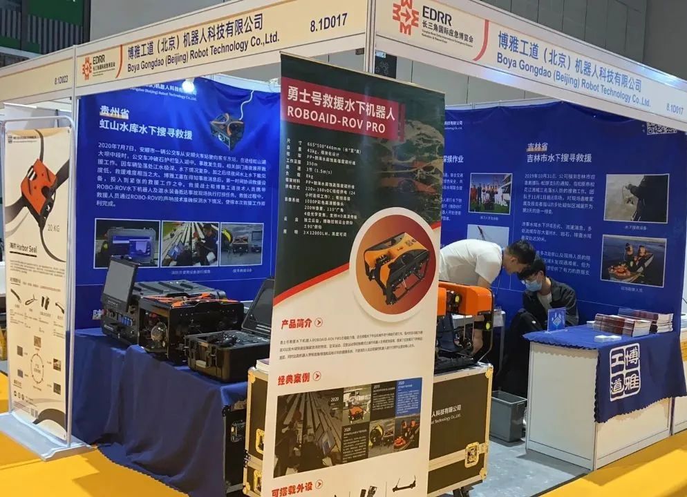 此次博覽會(huì),博雅工道專屬的展示區(qū)域,以深藍(lán)色幕布打底,淺灰色地毯鋪地,給人一種專業(yè)、沉穩(wěn)、大氣的視覺體驗(yàn)。而博雅工道主打的B端產(chǎn)品20公斤級(jí)ROV和45公斤級(jí)ROV也在此次博覽會(huì)中亮相,專業(yè)的設(shè)備與大氣沉穩(wěn)的布景,瞬間吸引了不少觀展企業(yè)與機(jī)構(gòu)的咨詢。