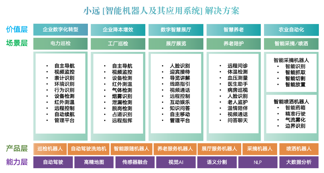 小遠機器人為中國最早進入物業(yè)領域的服務機器人,并開啟多領域、多場景的智能機器人服務。廣泛應用于金融、物業(yè)、政務、交通等垂直領域,為客戶提供以智能服務機器人為核心產(chǎn)品的整體服務解決方案。
