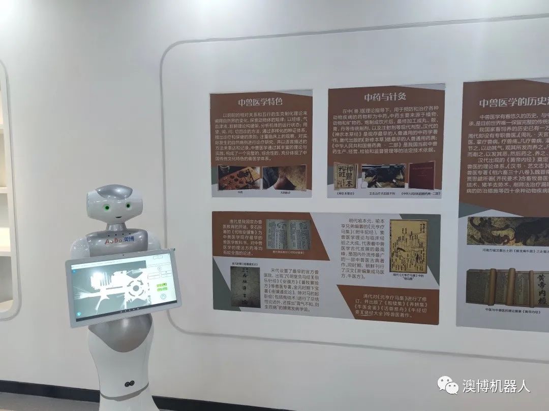 澳博迎賓機器人不僅大大提高了中國農(nóng)業(yè)大學動物醫(yī)學院的知識講解效率,緩解了講解教師的數(shù)量緊張,優(yōu)化了同學的知識接受體驗,而且還提高了大量同學甚至是校外學生的學習興趣,為中國農(nóng)業(yè)大學培養(yǎng)富有創(chuàng)新精神與能力的拔尖人才增添一份力量。
