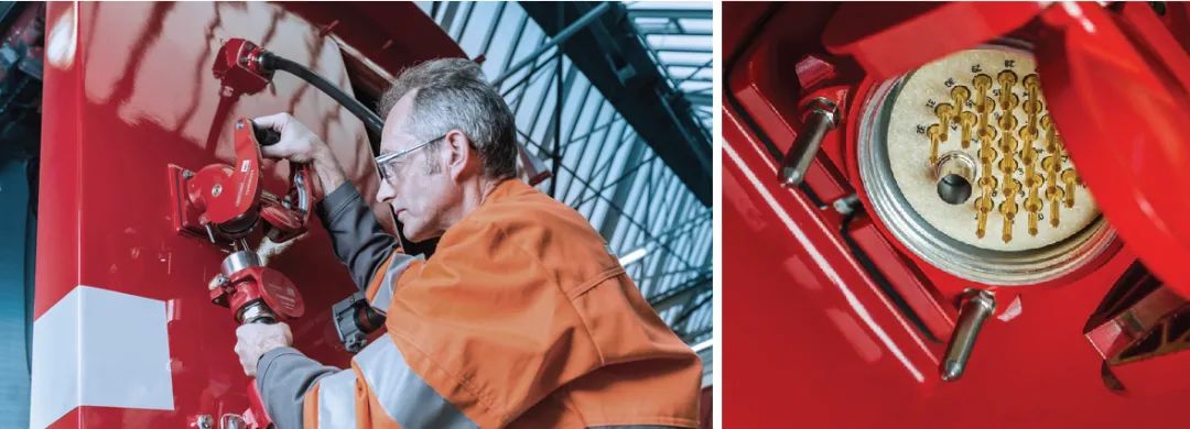 史陶比爾與RhB緊密合作,幫助制定技術(shù)規(guī)范,并開(kāi)發(fā)了一款全新的解決方案。連接器外殼非常堅(jiān)固,并配備一個(gè)手柄,方便輕松打開(kāi)。接觸部件充分搭接,確保即使遭受劇烈的振動(dòng)和溫差,連接也不會(huì)中斷。插頭與垂直方向保持 15°的夾角,大大降低了電纜帶來(lái)的機(jī)械應(yīng)力,并且極大簡(jiǎn)化了連接器的操作。保護(hù)蓋結(jié)構(gòu)可有效預(yù)防罩內(nèi)積雪。插入后的連接器由兩個(gè)縱向銷支撐,保證連接器不會(huì)傾斜。