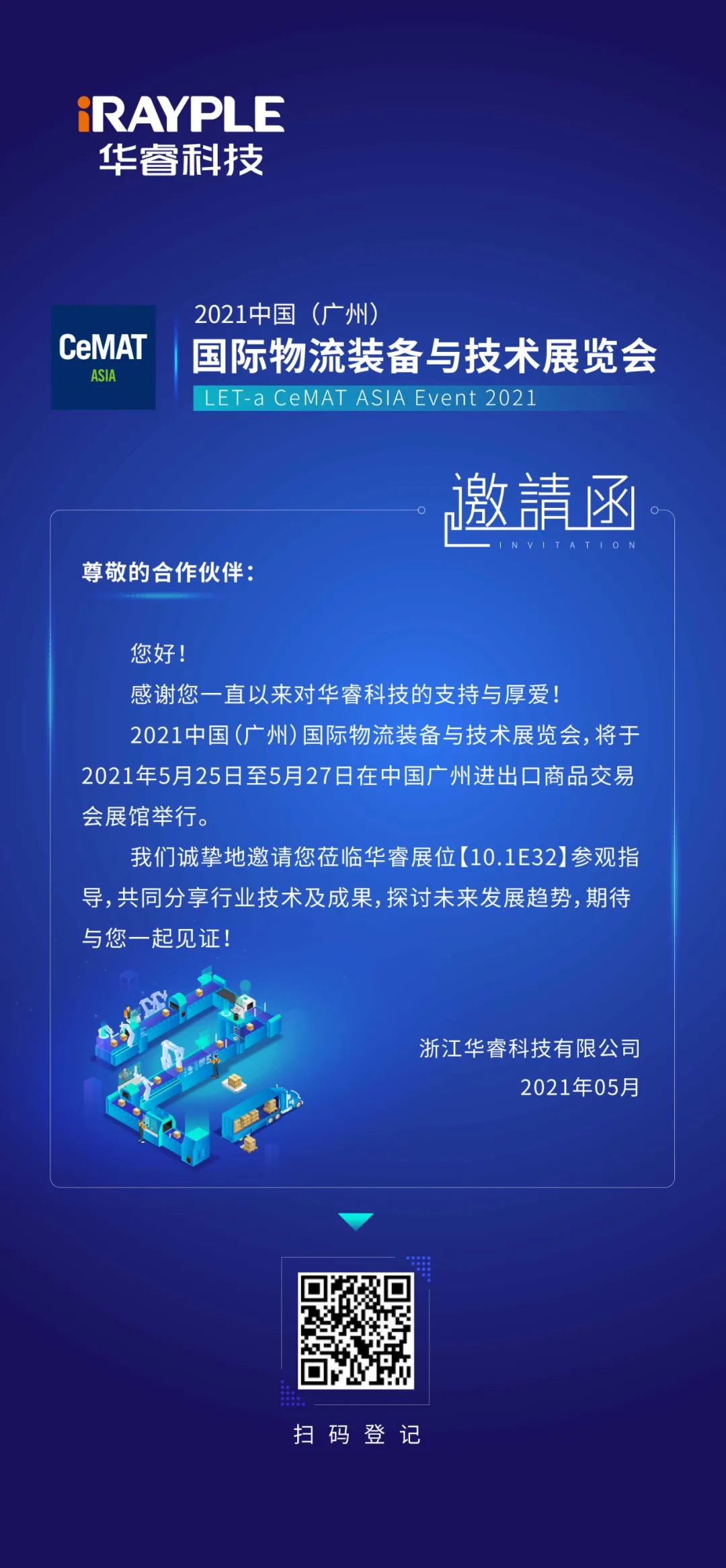 2021 中國(guó)(廣州)國(guó)際物流裝備與技術(shù)展覽會(huì)將于2021年5月25-27日在廣州舉行,助力行業(yè)發(fā)展、探討技術(shù)成果,華睿科技邀您共襄盛會(huì)!