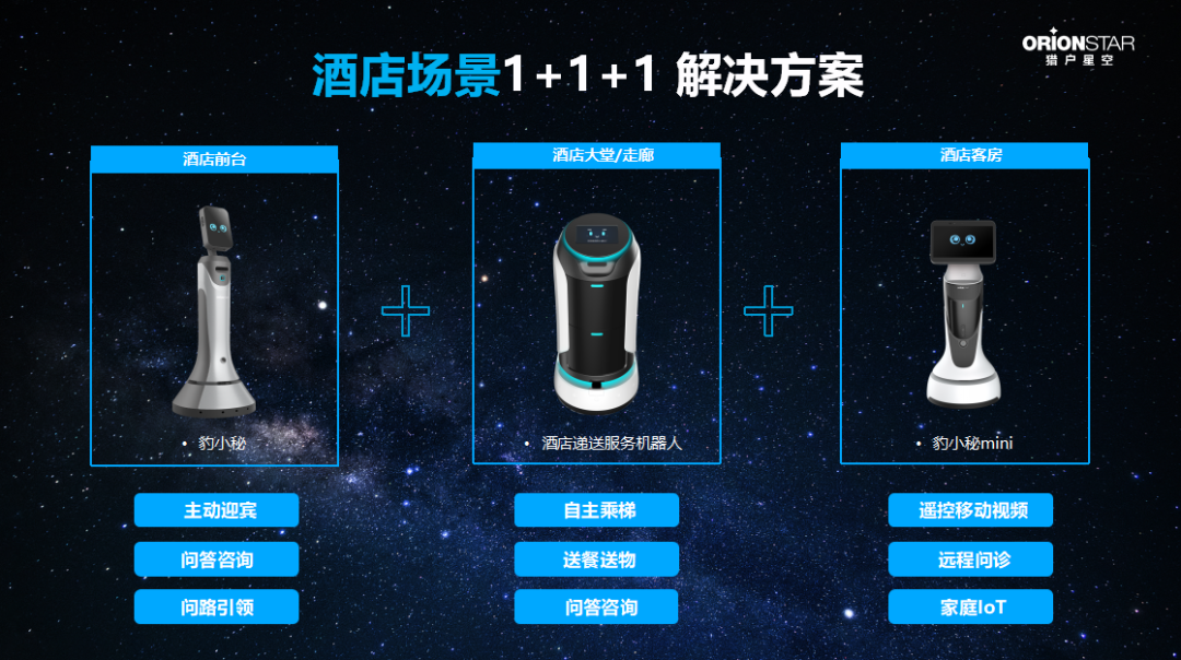 機(jī)器人豹小遞Sky上崗上海明捷萬(wàn)麗、南充天府尚雅等酒店,只是獵戶(hù)星空智能酒店解決方案創(chuàng)新落地的縮影。事實(shí)上,通過(guò)旗下接待、遞送、智能新零售等系列機(jī)器人的聯(lián)動(dòng)配合,獵戶(hù)星空智能酒店解決方案可以為酒店提供迎賓、問(wèn)詢(xún)、引領(lǐng)遞送、飲品制作等全鏈條服務(wù)。如在近期舉行的上海國(guó)際酒店及商業(yè)空間博覽會(huì)上,豹小遞Sky遞送物品、餐廳營(yíng)銷(xiāo)服務(wù)機(jī)器人招財(cái)豹助酒店內(nèi)的餐廳送餐、語(yǔ)音接待系列機(jī)器人可以主動(dòng)招攬、營(yíng)銷(xiāo)互動(dòng)、咨詢(xún)問(wèn)答、宣傳展示酒店信息……針對(duì)酒店細(xì)分場(chǎng)景的一系列的智能服務(wù),進(jìn)一步展示了獵戶(hù)星空機(jī)器人在助力酒店提供主動(dòng)、精準(zhǔn)、超預(yù)期的用戶(hù)體驗(yàn),提升客戶(hù)入住率和復(fù)住率,提升酒店競(jìng)爭(zhēng)力層面的巨大空間。