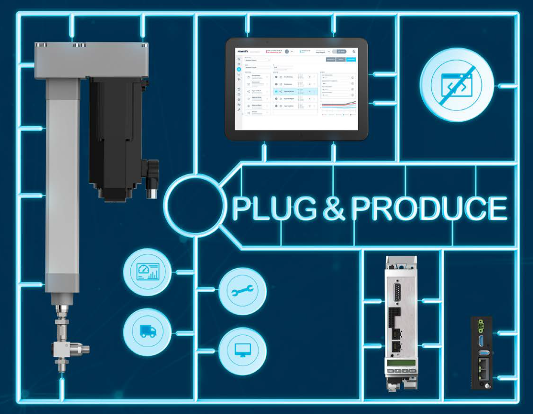 用于壓接應(yīng)用的智能功能套件把機(jī)電缸(EMC)、力傳感器、伺服電機(jī)、驅(qū)動(dòng)控制器等成熟的標(biāo)準(zhǔn)組件與帶有直觀HMI軟件的工業(yè)PC結(jié)合在一起,可在瀏覽器上獨(dú)立于設(shè)備而運(yùn)行,并可以通過平板電腦來操作。