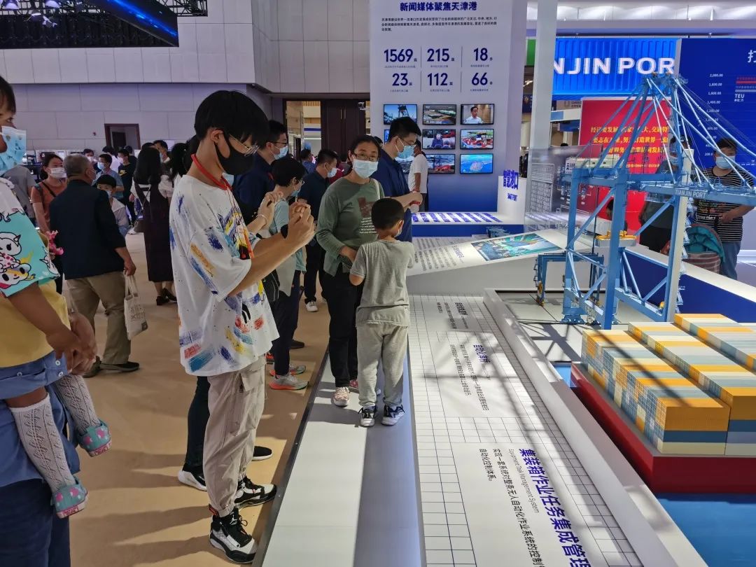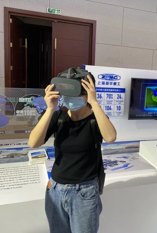 觀眾在振華重工展臺參觀體驗