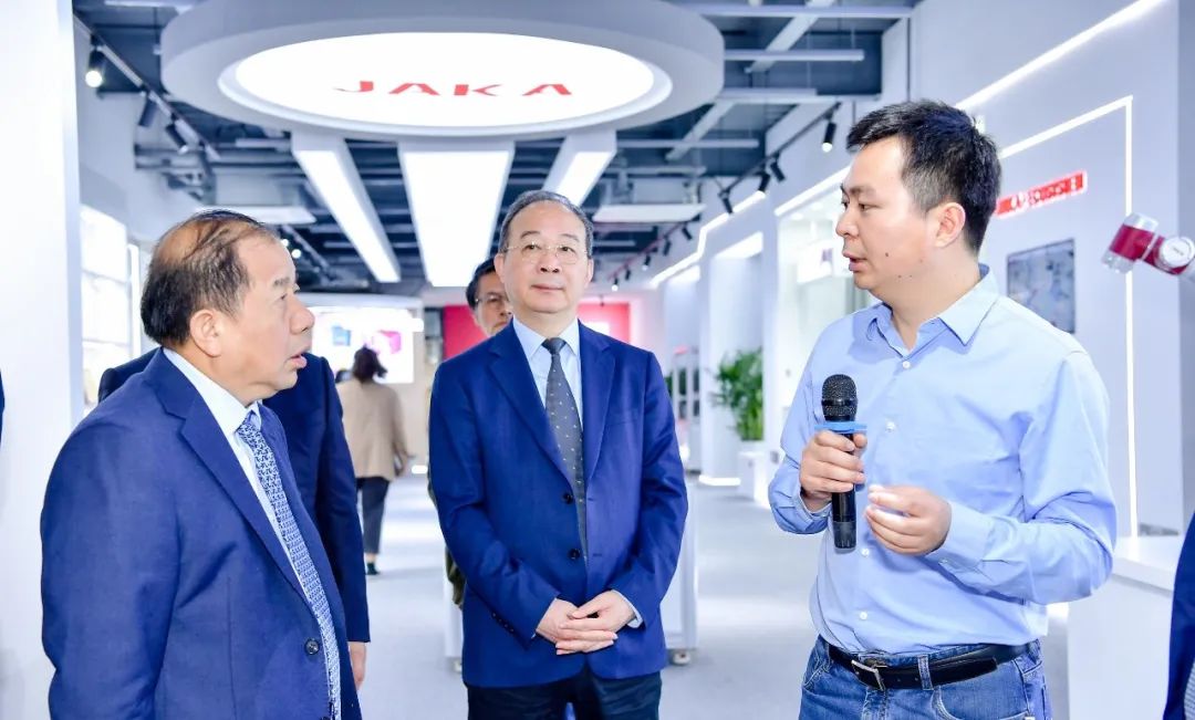 李明洋(右)向林忠欽院士(左)、倪耀明書記(中)對于學(xué)校、政府給予的支持表示感謝參觀過程中,林忠欽院士、倪耀明書記對于節(jié)卡機(jī)器人取得的成績給予了充分肯定和積極評價。林忠欽院士表示后續(xù)學(xué)校、企業(yè)、政府緊密合作,加強(qiáng)高校資源與社會資源的融合,創(chuàng)造良好的環(huán)境和平臺,賦能科研創(chuàng)新與人才培養(yǎng),創(chuàng)造出更多創(chuàng)新成果,為行業(yè)高質(zhì)量發(fā)展注入強(qiáng)大動能。