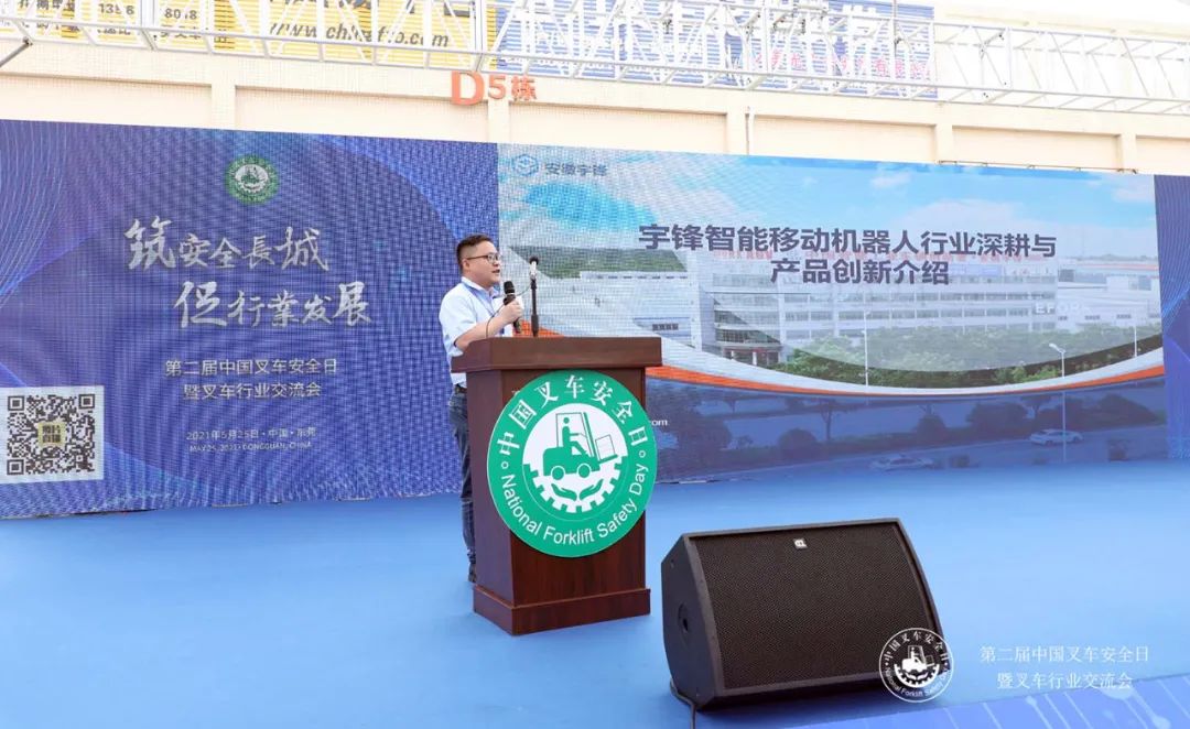 營銷中心副總經(jīng)理錢久林在交流會上分享關(guān)于“宇鋒智能移動機(jī)器人行業(yè)深耕與產(chǎn)品創(chuàng)新介紹”的主題演講。