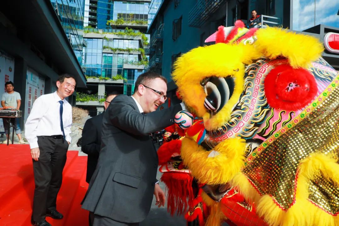 舞獅環(huán)節(jié)更是氣氛熱烈。前有領(lǐng)導(dǎo)為瑞獅點(diǎn)睛,又寓意為“點(diǎn)金”;后有瑞獅采青接青,預(yù)祝深圳辦事處開張大吉,生意興隆。