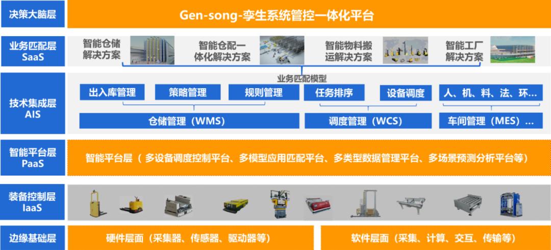 井松智能孿生系統(tǒng)管控一體化平臺(tái)是智能物流、智能制造系統(tǒng)集成的決策大腦,通過(guò)縱向的邊緣層、控制層、平臺(tái)層、集成層、業(yè)務(wù)層等與橫向的硬件設(shè)備、業(yè)務(wù)需求、任務(wù)功能等進(jìn)行雙坐標(biāo)匹配融合一體化應(yīng)用,實(shí)現(xiàn)智能集成、智能管控、智能可視、智能精益。