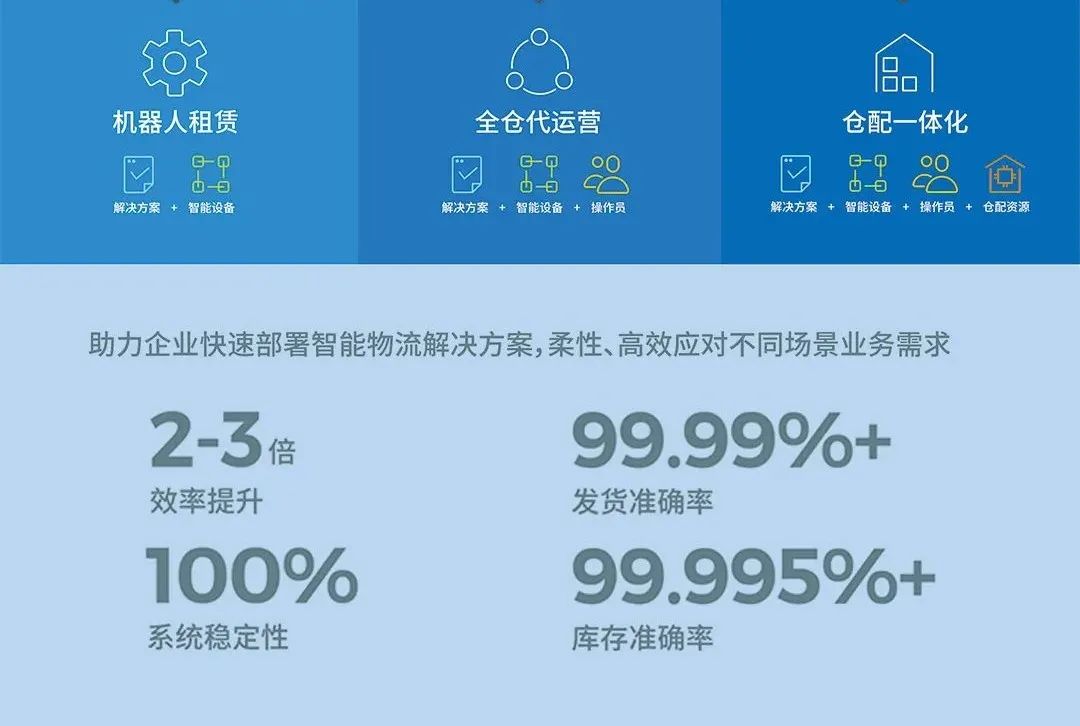 極智嘉于2018年在業(yè)界首次提出的機器人即服務(wù)(Robot-as-a-Service, RaaS)靈活創(chuàng)新商業(yè)合作模式。它讓企業(yè)不僅可采購,還可選擇機器人租賃、全倉代運營和倉配一體化智能倉服務(wù),降低企業(yè)部署機器人系統(tǒng)的資金和能力門檻,助力更加快速實現(xiàn)供應(yīng)鏈升級改造。