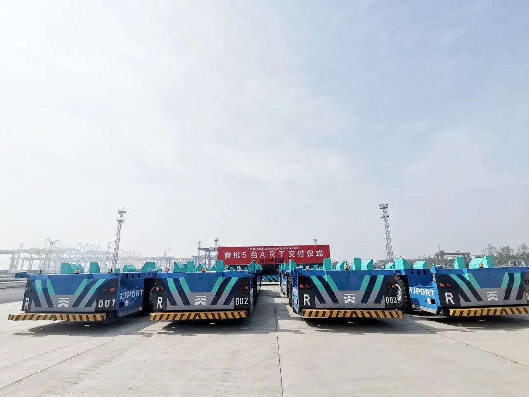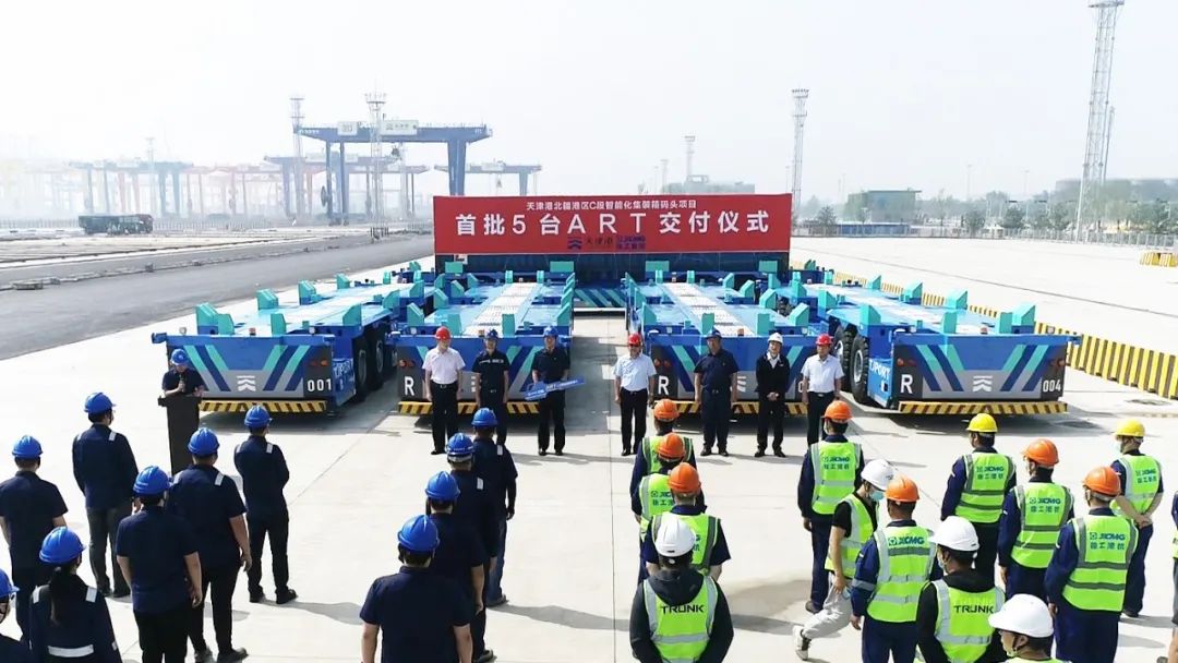 九河下梢,渤海之濱。6月1日,徐工首批5臺無人駕駛水平運輸機器人ART,在天津港項目現(xiàn)場正式交付,將率先在C段碼頭啟動測試運營。與此同時,本次中標的剩余15臺ART正加速生產(chǎn),于近期陸續(xù)交付至天津港。