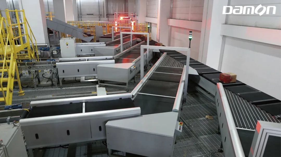 德馬的交叉帶式分揀機(jī)系統(tǒng)由供包、拉距排序、包裹整位、信息掃碼自動識別系統(tǒng)、分揀主機(jī)及下件格口等幾個部分組成,通過WCS系統(tǒng)+PLC電控對其進(jìn)行控制。通過人工、半自動和全自動、頂部三種不同形式的高效率供包,將物品輕柔平穩(wěn)地導(dǎo)入到分揀機(jī)上,經(jīng)頂面、三面、五面、六面的照相式條碼閱讀裝置自動掃描,獲取物品的目的地,并將其同步到分揀主機(jī)。