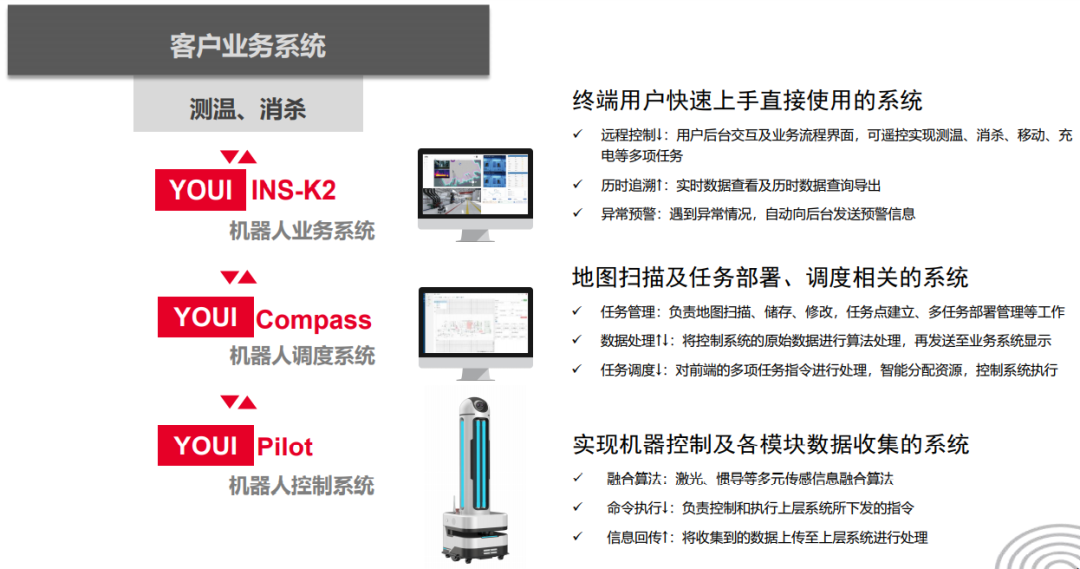 機(jī)器人任務(wù)執(zhí)行產(chǎn)生的消殺記錄、體溫?cái)?shù)據(jù)等海量信息即時(shí)回傳,防疫數(shù)據(jù)全周期記錄,100%回溯,監(jiān)管部門(mén)能夠實(shí)時(shí)獲取防疫一線的第一手消息進(jìn)而輔助迅速?zèng)Q策,將疫情傳播扼殺在搖籃中。